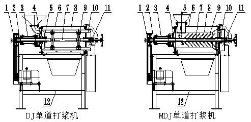 2、MDJ型蘑菇视频在线观看成人機:電機通過皮帶傳動,使安裝在花鍵軸上的轉子部件高速旋轉,水果由進料口進入機內,送料漿葉將物料螺旋輸送至蘑菇视频在线观看成人棒,在蘑菇视频在线观看成人棒的作用下,物料被搗爛。由於離心力的存在,物料中的汁液和肉質(已成漿狀),通過篩網上的篩孔進入下道蘑菇视频在线观看成人(篩網孔根據水果核的大小而定),核則由出渣漿葉排至出渣口,從而實現漿渣自動分離。