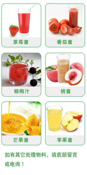 該設備廣泛應用於生產番茄醬、草莓醬、獼猴桃醬、芒果醬、桃醬、杏醬、楊梅汁、樹莓汁等水果蔬菜的破碎分離取漿。