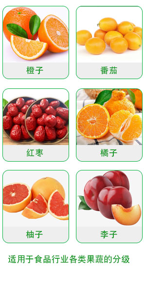 該分級機是目前國際上較先進的分節設備,適用於各類O型水果的分級。例如:蘋果、梨、橙子、柑橘、檸檬、柚子等水果的大小進行分級,以滿足下道工序的加工要求。可根據不同的要求分出不同尺寸的水果,進入各部分工序。該機具有分級精度高、產能大、對水果表麵保護性好,不損傷到水果的外表麵等特點。