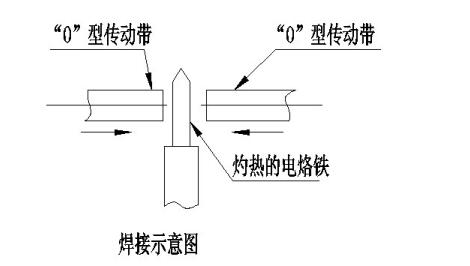 1、使用機器時,若發生“0”型傳動帶斷裂,應立即切斷“0”型帶傳動減速機和分級傳動減速機電源,鬆開從動盤兩端軸承座的漲緊螺栓,使“O”型傳動帶處於放鬆狀態。然後用小刀把斷裂的“O”型傳動帶兩頭截麵削平,再把“O”型傳動帶兩頭置於灼熱的電烙鐵兩邊給“O”型傳動帶兩頭截麵加熱(如下圖)。當看到“O”型傳動帶兩頭開始發熱軟化時,移動兩端“O”型傳動帶或抽出電烙鐵,使兩“O”型傳動帶端麵接觸並熔合一起。熔合時,兩手應保持兩端麵接觸兩分鍾,以便其充分熔合。等接合麵冷卻後,雙手拉動接合麵,確認其完全熔合後,小刀去除接合麵四周的毛邊。裝好“O”型傳動帶後,擰好從動盤兩端軸承座的漲緊螺栓,漲緊“O”型傳動帶。