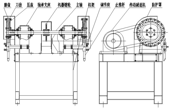 該機適用於去棕後椰子的去殼。結構簡單,操作方便,效率高等特點。